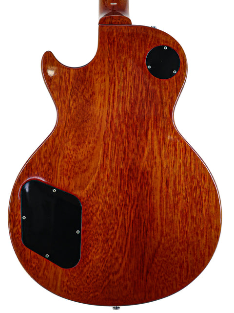 Rear side of a 2004 Gibson Custom Shop 1959 Reissue Les Paul R9 electric guitar showcasing its wooden body.